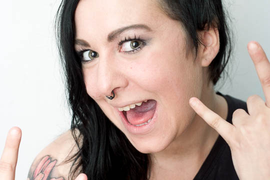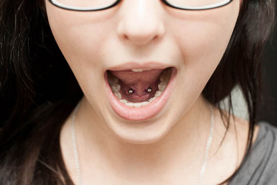 En lycklig tjej efter att ha blivit piercad i underlÀppen pÄ sidan. Jag sÀtter oftast in en labret, som sedan kan bytas till ring nÀr det börjat bli lÀkt.