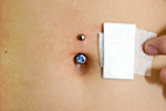 För rengöring av navelpiercing rekommenderas [antisepticbodysoap]Antiseptic [antisepticbodysoap]Bodysoap. Ett alternativ Àr [lactacyd]LactacydtvÄl. Med rena hÀnder rengörs sedan piercingen tvÄ gÄnger dagligen. Under övrig tid fÄr gÀrna [kompress]kompress anvÀndas för att skydda mot smuts och slitage frÄn klÀder.